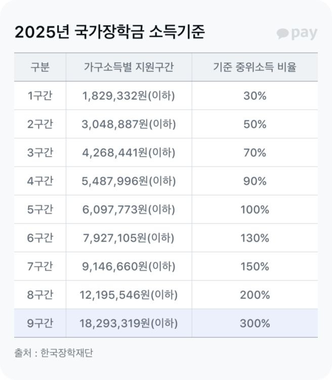 국가장학금은 소득구간에 따라 지원금액이 달라지는 구조입니다.